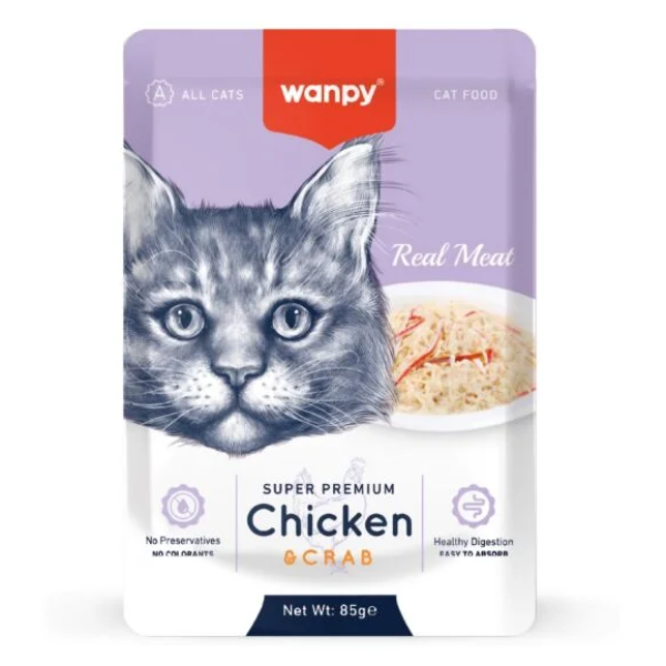 Wanpy Super Premium Pouch Cat Food Chicken & Crab 85gm