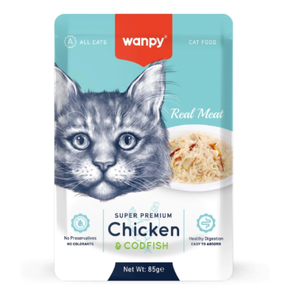 Wanpy Super Premium Pouch Cat Food Chicken & Cod Fish 85gm