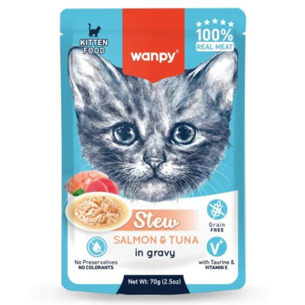 Wanpy Stew in Gravy Kitten Pouch Cat Food Salmon & Tuna 70gm