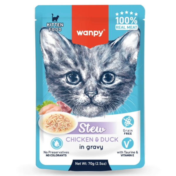 Wanpy Stew in Gravy Kitten Pouch Cat Food Chicken & Duck 70gm