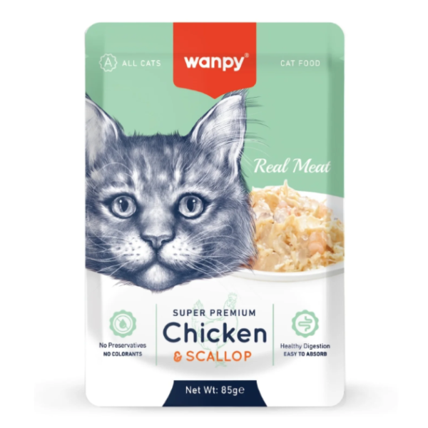 Wanpy Super Premium Pouch Cat Food Chicken & Shrimp 85gm